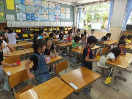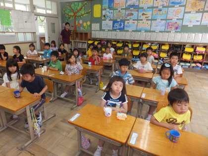 いよいよ本番です。ビデオを見ながら,右・左・真ん中と口の中で薬を動かします。緊張気味でしたが,みんなうまくできてホッとしました。