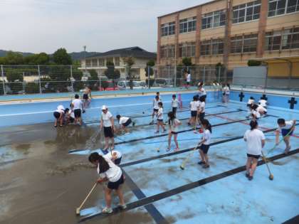 6年生が3時間かけてプール掃除をしてくれました。大変美しくなり,来週からの水泳学習が楽しみです。6年生の皆さん,ありがとう。