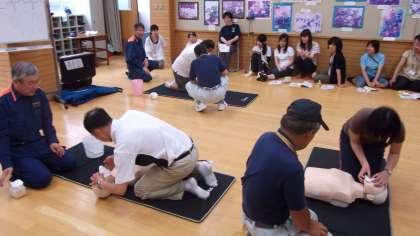 心肺蘇生法の実技研修や本校に2台設置してあるAEDの使用法研修など,いざという時に役立てられるよう一生懸命でした。