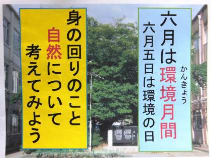 6月は環境月間です。身の回りのこと・自然について考えてみました。山階南の校内にも,関心をもって見ていると季節を感じるものがたくさんあります。