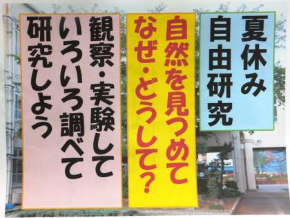 夏休みの自由研究に向けて,そろそろテーマを考えるように,校長先生からお話がありました。自由研究は,テーマ決定や計画を立てることが一番肝心です。できましたら親子でじっくり取組んでほしいものです。