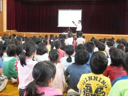 何と何と,手に乗せたシャボン玉を手の上でボールのように弾ませることができました。これにはみんな驚いて,目を丸くして注目していました。少し糊を入れたシャボン液を作り,お家でもぜひ挑戦してみてください。