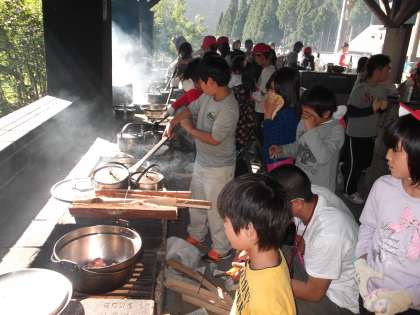 かまど係は,簡単そうだけど火をつけるのに大変苦労していました。
