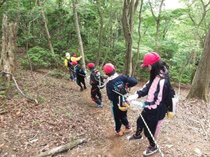 急な下りに入りました。ロープをたよりにレンジャーごっこを楽しみました。