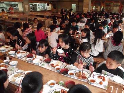 豪華なおかずに迷ってしまいます。ご飯のおかわりをする人も結構いましたね。すごい食欲も素晴らしいです。感心しました。