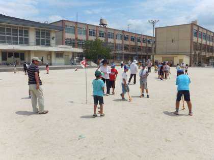 チーム内で競い合いましたが,偶然もあり勝敗の行方は最後まで分かりませんでした。暑い暑い中,子どもたちは元気いっぱい楽しみました。ご協力いただいた皆様,本当にご苦労様でした。