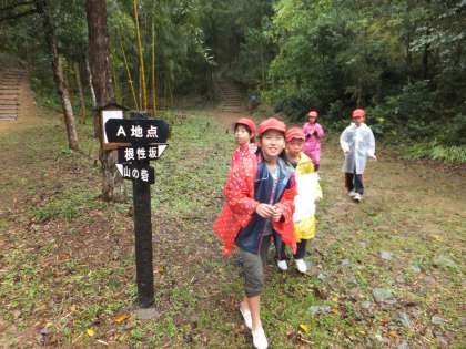 地図を見ながらグループごとに1時間をかけて山中を探検しました。チームワークと地図の見方が要求されます。大丈夫でしょうか。