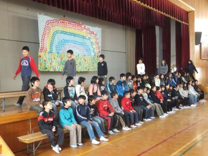 児童会主催で「6年生を送る会」が行われました。6年生の入退場には,4年生が「見上げてごらん夜の星を」をリコーダーで演奏しました。