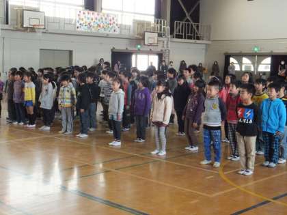 「お別れはさみしいけれど笑顔でさようなら!」2年生は「きみとぼくのラララ」を歌いました。6年生との思い出を忘れずに,これからもがんばります。中学校に行っても私たちのことを思い出してくださいね。