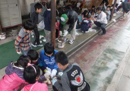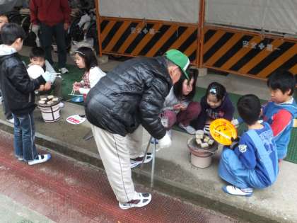 総合学習の「昔の道具調べ」で,七輪体験をしました。火をつけることに苦労しながらも,お餅焼きを楽しみました。