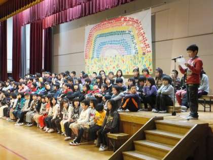 総合学習のまとめとして「1/2成人式」を行いました。一人一人が10年間を振り返り,思いを真剣に語りました。