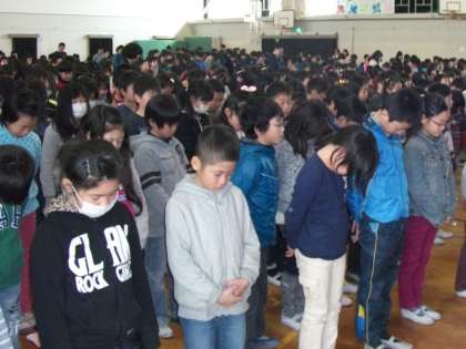 2時46分,東日本大震災の被害により尊い命を亡くされた方々のご冥福をお祈りして,全校で1分間の黙とうを捧げました。二度とこのような悲劇が起こりませんように。