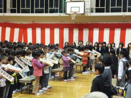 最後に,2年生から言葉と演奏のプレゼントです。詩の群読にも頑張りました。