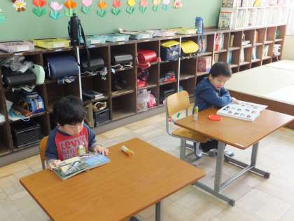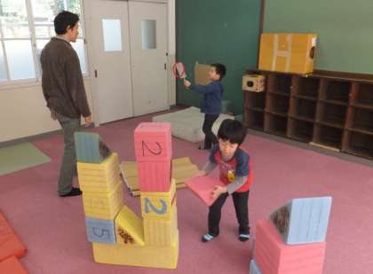 ひまわり学級の2人は,プレイルームでお気に入り遊びを楽しみました。