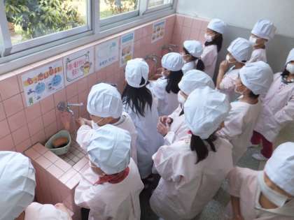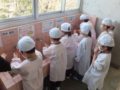 手洗いも,石鹸・アルコールと念入りに緊張しながら頑張っていました。