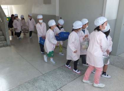 重い食缶や牛乳を運ぶのも初めてのことで,一生懸命でした。