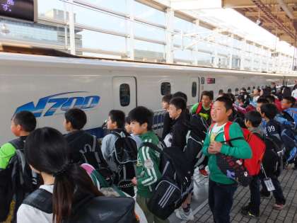 校舎から新幹線は見えますが,初めて新幹線に乗る人もいたようです。