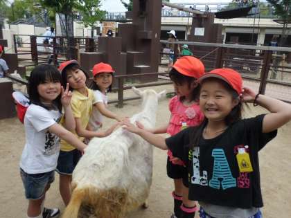 ふれあいコーナーではヤギにおそるおそるタッチしました。