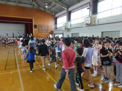 5年生の素敵なリコーダー演奏とともに1年生が元気よく入場しました。