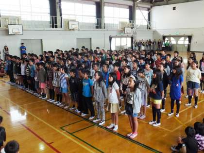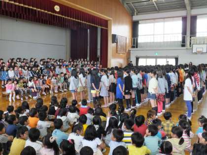 聞く姿勢や歌う姿勢,歌声で最高学年の姿を示しました。口ずさんでましたね。