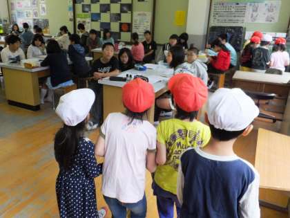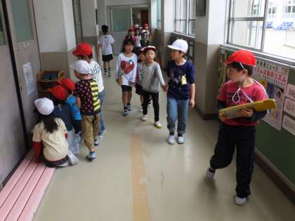 生活科の学習で,2年生が1年生を連れて学校案内をしました。