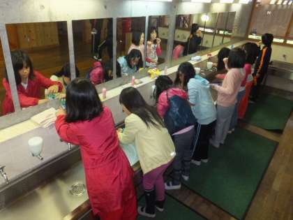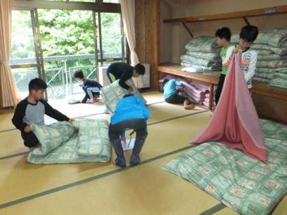 30分で寝具片付けに洗面・歯磨きと,普段経験しない一日のスタートです。