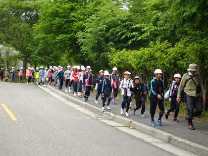 準備体操をして,頑張るぞとみんなで気合を入れて,笑顔で出発しました。