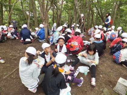 登山恒例のおにぎり弁当は,おいしいとかぶりついていて大好評でした。