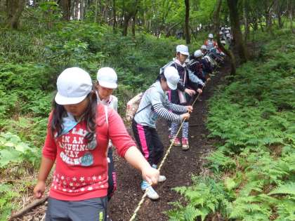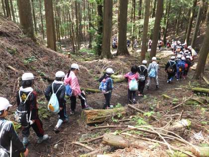 鳥やカエルの声,風の音や木のいいにおい等,山の中だけの体験をしました。
