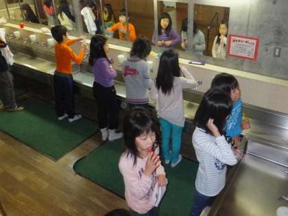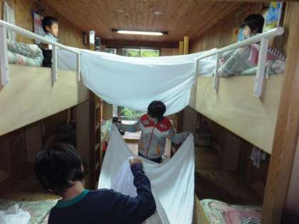 寝具片付けに洗顔・歯磨きと,今日もあわただしく一日のスタートです。