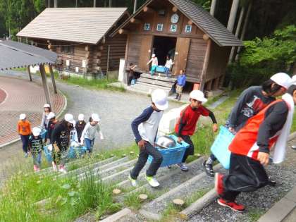 昼食のおいしいやきそば作りに,ワクワクしながらの挑戦です。