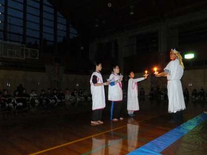 火の神が厳かに入場し,火の子が火をもらって,楽しいイベントの始まりです。