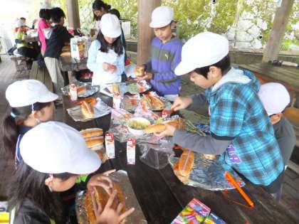 朝食は野外炊事のパックドッグに挑戦で,初めての経験が多く楽しみでした。