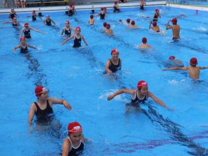 今年度初めての水泳学習で,まずは入水方法の確認をしました。