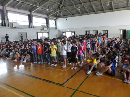 3年生が元気よく「詩の群読」を発表しました。朝から大きな声は素敵ですね。