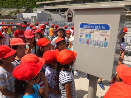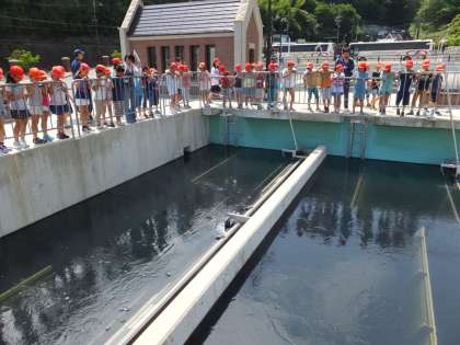職員の方より説明を聞いた後,水がきれいになっていく施設を見学しました。
