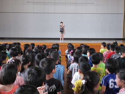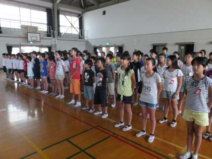 児童会の歌「歌よありがとう」を,全校で元気いっぱい歌ってのスタートです。