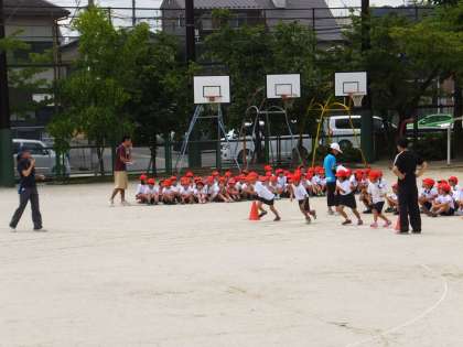 1年生は初めての運動会に向けて,50m走の練習に頑張りました。