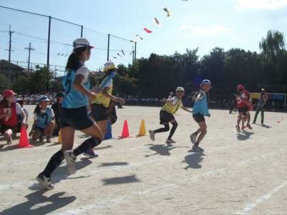 リードしながらスムーズなバトンパスも見応えのある高学年リレーでした。