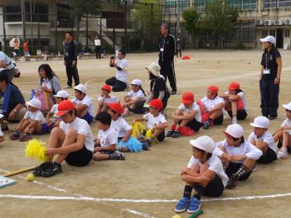 鏡山小学校の運動場に13校のお友達が集まって運動会が行われました。