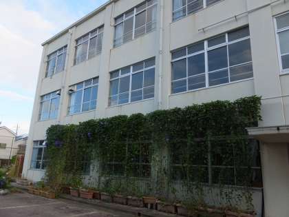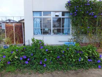 台風19号の強風で緑のカーテンが屋上から外れ地面に這っていました。