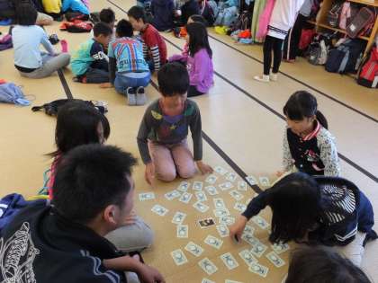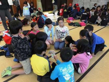 90畳の部屋でカードゲームをしばし男女仲良く楽しんでいました。