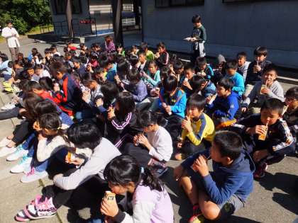 ジュースを味わい校長先生より「みさき折り」を教えていただきました。