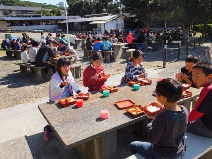 一生懸命の活動でお腹もペコペコで,弁当を美味しくいただきました。