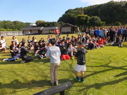 芝生広場で走り回ったり一発芸をしたりして,楽しい自由時間でした。