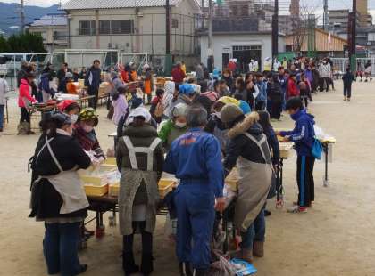 もちつき大会の担当がPTAの皆様方で,早朝よりご苦労様です。