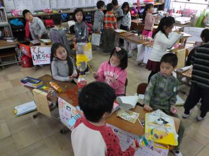 手作りおもちゃのコーナーを順番に回って楽しみました。