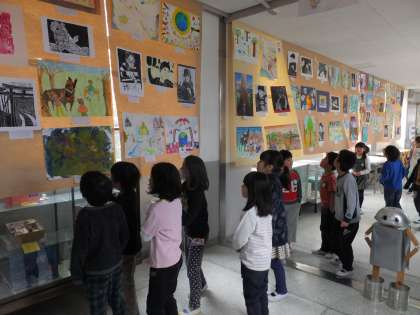 山科支部の小学校の絵画と書写の力作を掲示して鑑賞しました。