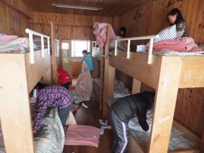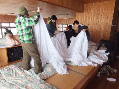 自分の寝床はシーツを広げることから始め,自分で頑張って作りました。