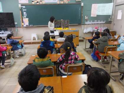 みんな大好きなかみしばいには,聞き入っている姿が見られました。
